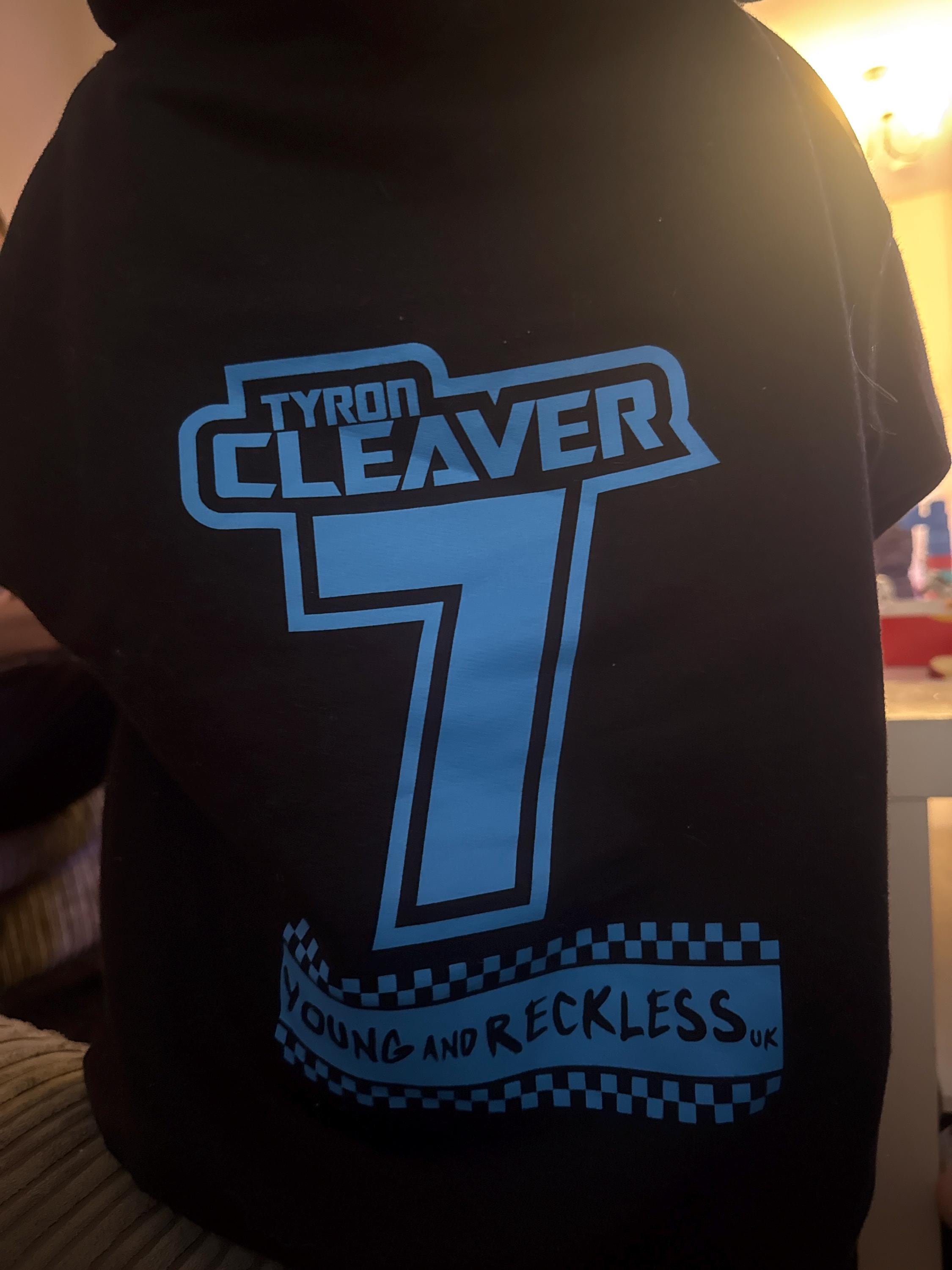 Perfect item for my 3 little ones - the best hoodies with their dads name and race number on - we got some when they were younger but they grew out of them so sized up
